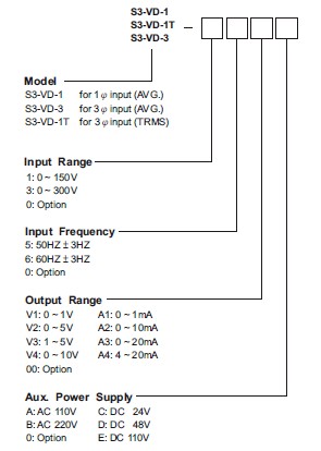 蘇州迅鵬臺灣臺技S3-VD-3交流電壓變送器選型圖如下: